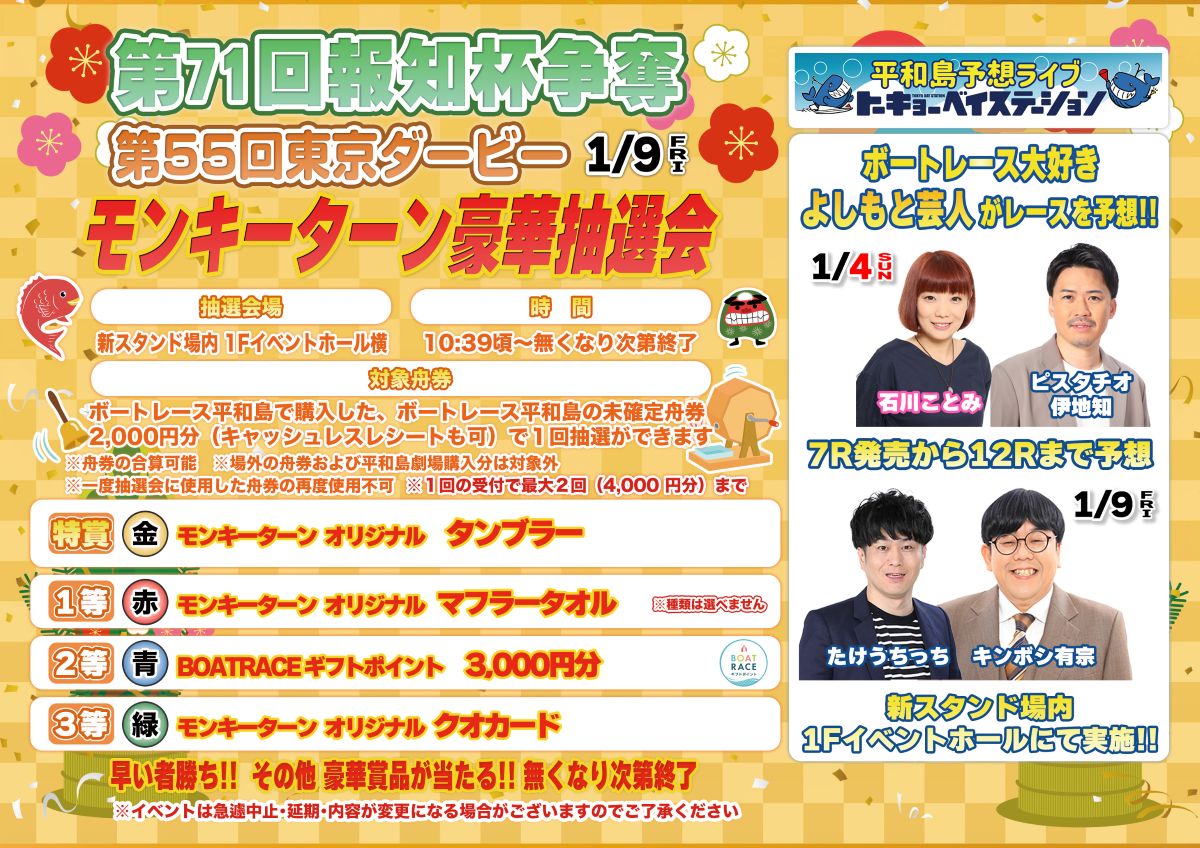 - モンキーターン豪華抽選会&平和島予想ライブ