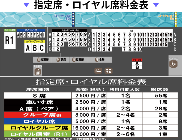 専用モニターと大型スクリーンの両方でレース観戦できる有料席。