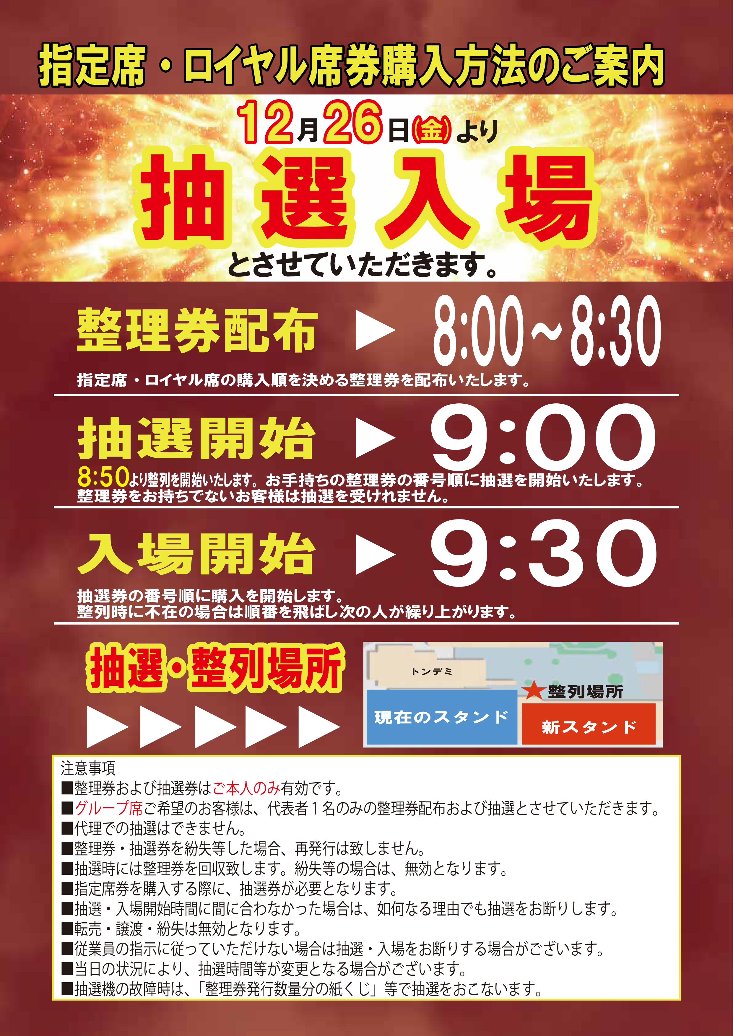 ※スタンド4階指定席入場口にて、指定席券を確認後、スタンプを押させていただきます。